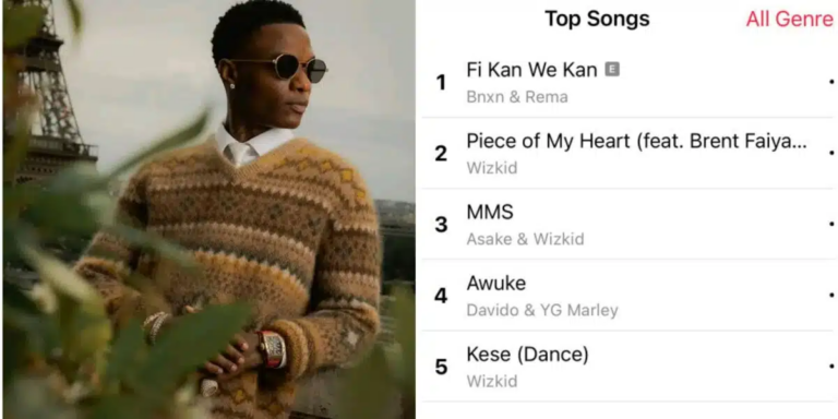 Nigerian Afrobeats superstar, Ayodeji Balogun, better known as Wizkid has dominated the chart rankings with his new single, ‘Dance’, securing a spot in the top 5 on Apple Music Charts. This impressive feat marks another milestone in Wizkid’s illustrious career, solidifying his position as a global music icon. In the early hours on Friday, the top-charting...
