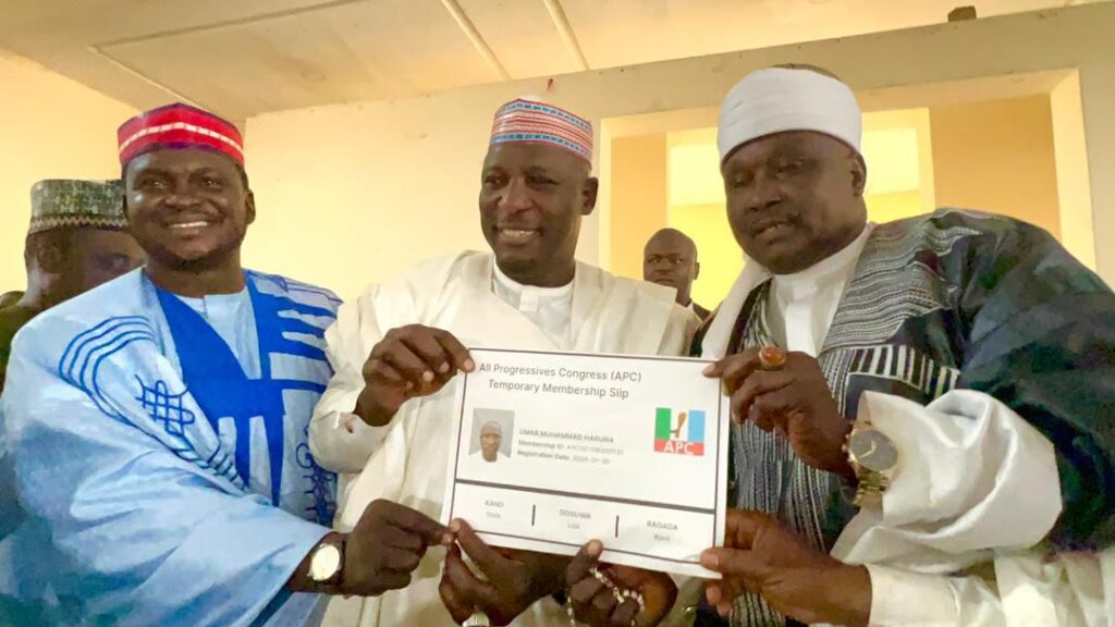 “The Hon. Commissioner of Water Resources, Kano state and former APC state Chairman, Alhaji Umar HARUNA Doguwa, Engr. Ado Ibrahim Doguwa and The Hon.Chairman Doguwa Local Government Chairman, Abdul Rashid Doguwa, and his entire executive, legislative teams and a Host of other decamping from the NNPP who are mostly Government officials under the leadership of Governor Yusuf.