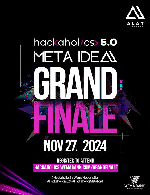 Wema Bank has announced the grand finale of the 5th edition of its flagship youth and startup-focused tech competition, Hackaholics.