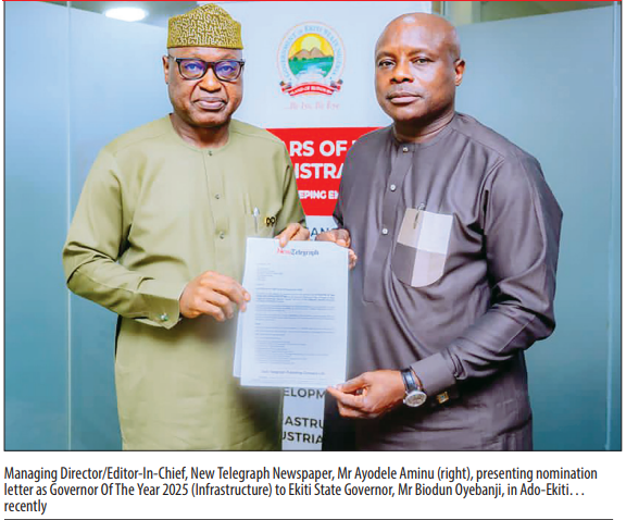 Ekiti State Governor, Biodun Oyebanji, has expressed deep appreciation to the Board and Management of Daily Telegraph Publishing Company, publishers of the New Telegraph titles, for his nomination as Governor of the Year (Infrastructure), describing it as a recognition of his modest achievements in the state.