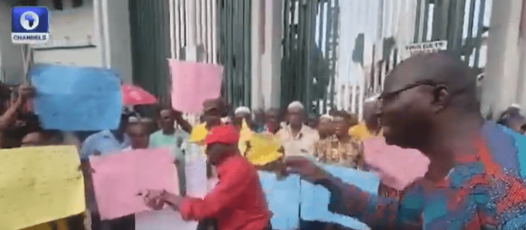 New Telegraph reports that the protesters, who were led by the Chairman of the Coalition of the Federal Pensioners, Lagos Chapter, Mukaila Ogunbote, carried placards reading “PTAD is all about you, stop selection” and “No ₦32,000 increment.”