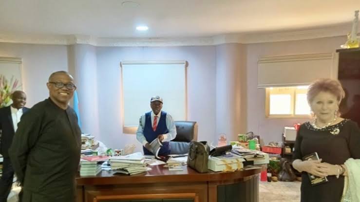 Former Governor of Anambra State, Peter Obi, on Monday, led a delegation to visit the Senior Advocate of Nigeria (SAN) and owner of Afe Babalola University, Afe Babalola, in Ado-Ekiti, Ekiti State.
