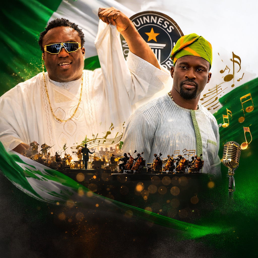 Guinness World Records has confirmed that a concert featuring Saheed Osupa, Rybeena, KS 1 Malaika, T.I Blaze, and 81 other musicians set the record for the largest orchestra performing Afrobeats. The milestone was achieved during Trench Symphony: