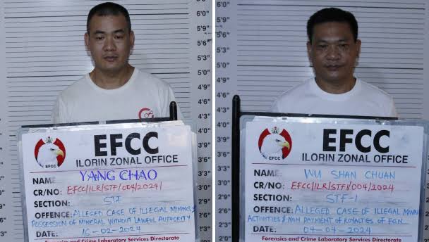 Justice Abimbola Awogboro of a Federal High Court in Ilorin has convicted and sentenced two Chinese, Yang Chao and Wu Shan Chuan, to prison for illegal mining of solid minerals in Kwara State.
